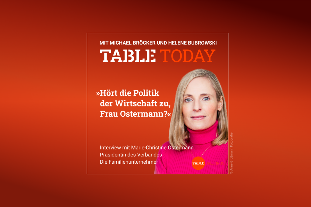 Die Opposition sieht Deutschland auf dem Weg in die Deindustrialisierung. Auch Marie-Christine Ostermann, Präsidentin des Verbands ‘Die Familienunternehmer’ und geschäftsführende Gesellschafterin von Rullko Großeinkauf, treibt die Sorge um, dass Wirtschaftsunternehmen abwandern. Sie fordert den Abbau von Subventionen nach der Rasenmäher-Methode. Im Gespräch mit Helene Bubrowski wird klar, dass Ostermann im Grunde einen kompletten Mentalitätswechsel in der Wirtschaftspolitik fordert.