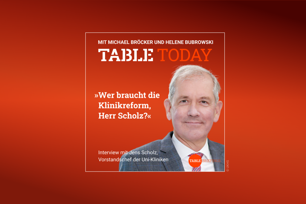 Der Vorsitzende des Verbands der Universitätsklinika Deutschlands (VUD) Jens Scholz setzt beim Thema Krankenhausreform auf neue Verbündete. Zwar hätten die Gesundheitsminister mit „16 zu null“ entschieden, dass Karl Lauterbach seine Reform nachbessern müsse. „Aber im gleichen Atemzug haben die Wissenschaftsministerinnen und -minister und die Finanzministerinnen und Finanzminister mit 16 zu null für die Reform gestimmt“, sagte Scholz zu Table.Briefings. Auch die Ministerpräsidenten dürften ein Interesse am Gelingen haben, „denn in dem neuen Gesetz liegt ja richtig viel Geld“ – laut Scholz sind „alleine für 2024 zwei Milliarden im Topf“.